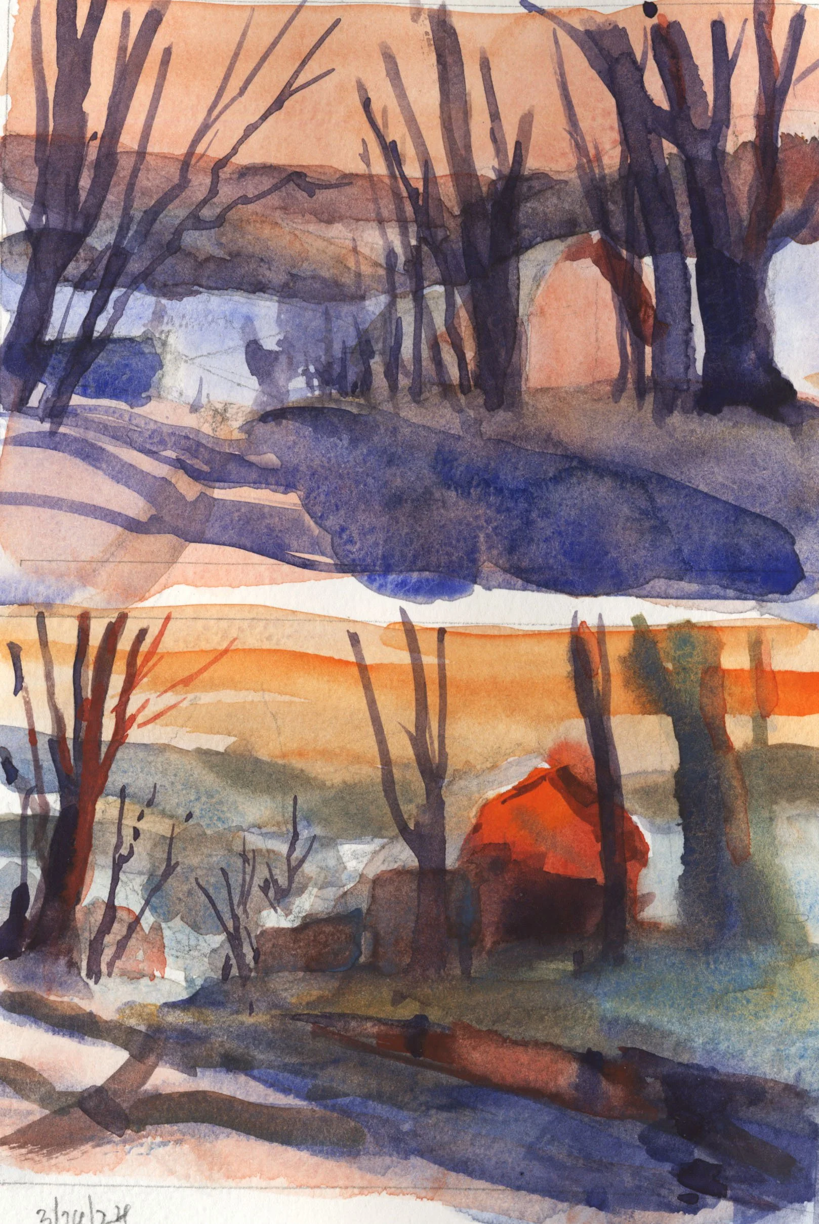 “Inverno” - original watercolor landscape painting