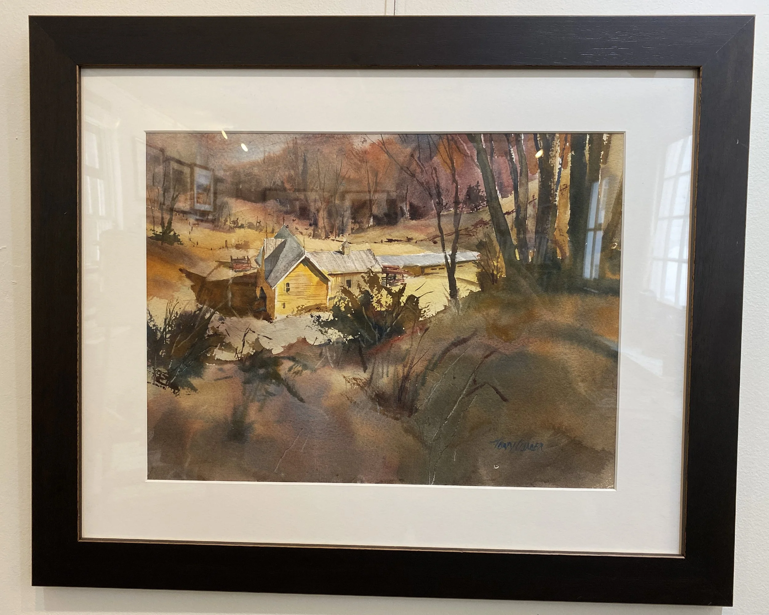“Yellow Farm” - watercolor landscape painting of early spring in Vermont