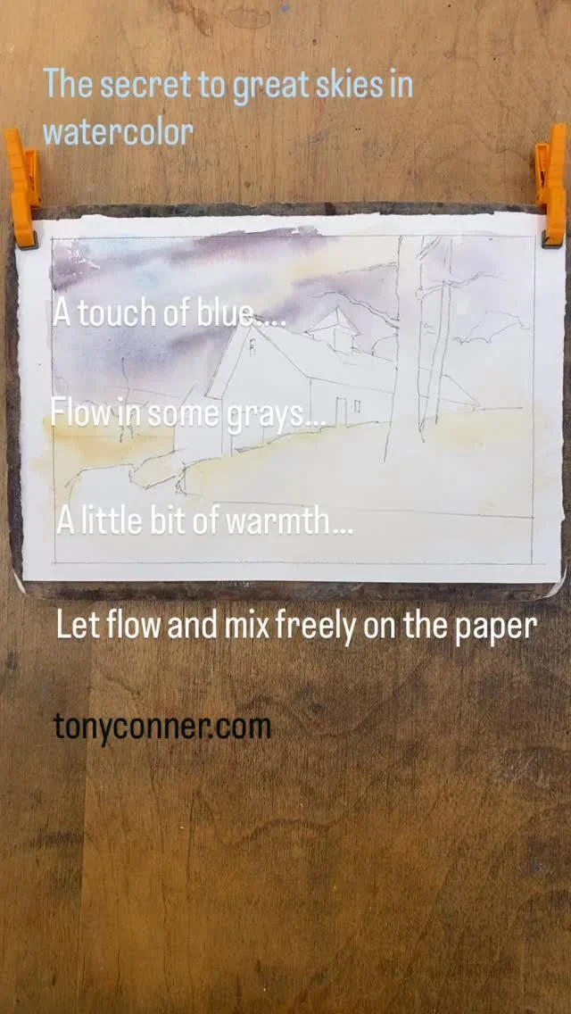 The painting is matted and mounted in archival materials and framed under glass.